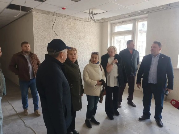 Депутат Думы Великого Новгорода Лариса Акманова вместе с коллегами из Государственной Думы Артёмом Кирьяновым, регионального парламента Николаем Веригой, председателем комитета по образованию Администрации Великого Новгорода Ириной Мусаевой, членом Общественной палаты Новгородской области Юлией Бороненко проверили ход ремонтных работ в школе № 25.